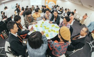 地域でオレンジフラッグを広めるにあたって、「どのようにPRをすれば良いのか?」「どのように仲間を巻き込んで行けば良いのか?」「継続的に活動をしていくためにどのように資金を集めたら良いのか?」という三つのテーマに分かれ議論を展開し、「オレンジコインを発行して様々なサービスと連携させる」「砂浜でオレンジフラッグをもって避難場所に向けて走るランイベントの開催」などのアイディアが生まれ、今後の展開に結びつく場となりました。