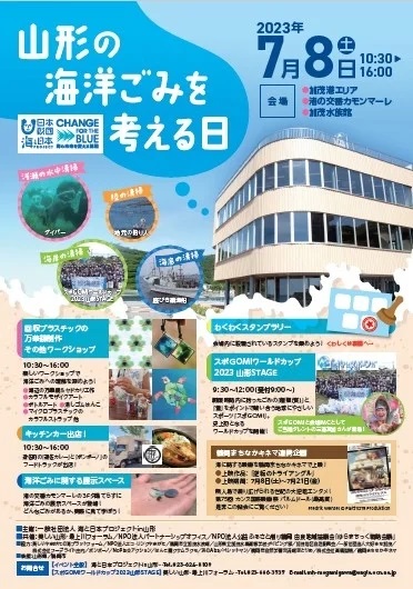 海と日本プロジェクトin山形は、2023年7月8日(土)に「山形の海洋ごみを考える日」を開催します。イベント当日は、海洋ごみに関する展示やワークショップ等を開催します。