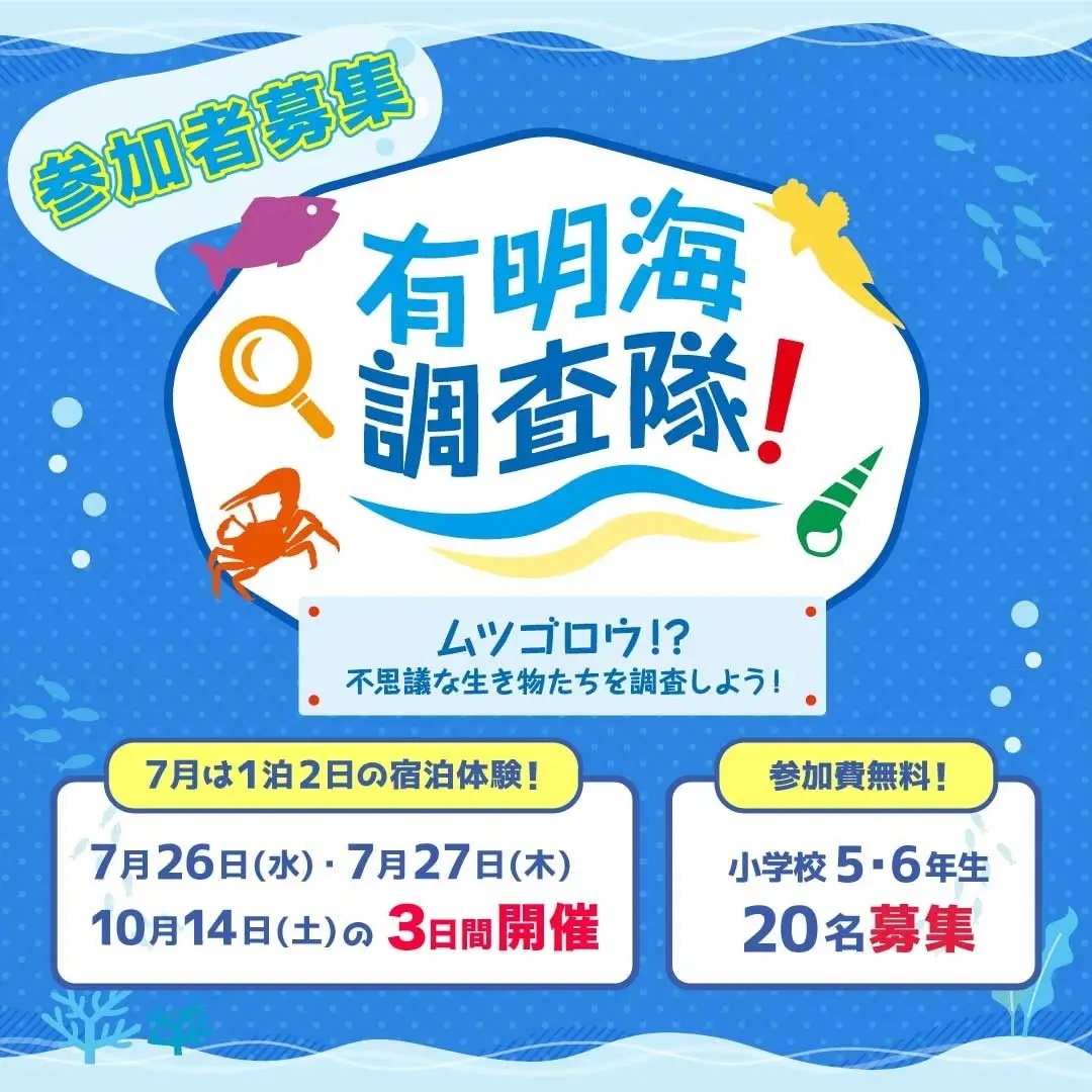 一般社団法人 海と日本プロジェクトin ふくおかは、7月26日(水)・27日(木)・10月14日(土)<有明海調査隊!~ムツゴロウ!?不思議な生き物たちを調査しよう!~>を開催。「福岡県柳川市」を舞台に有明海の干潟の現状や、有明海の生き物の生態系について学習していきます。