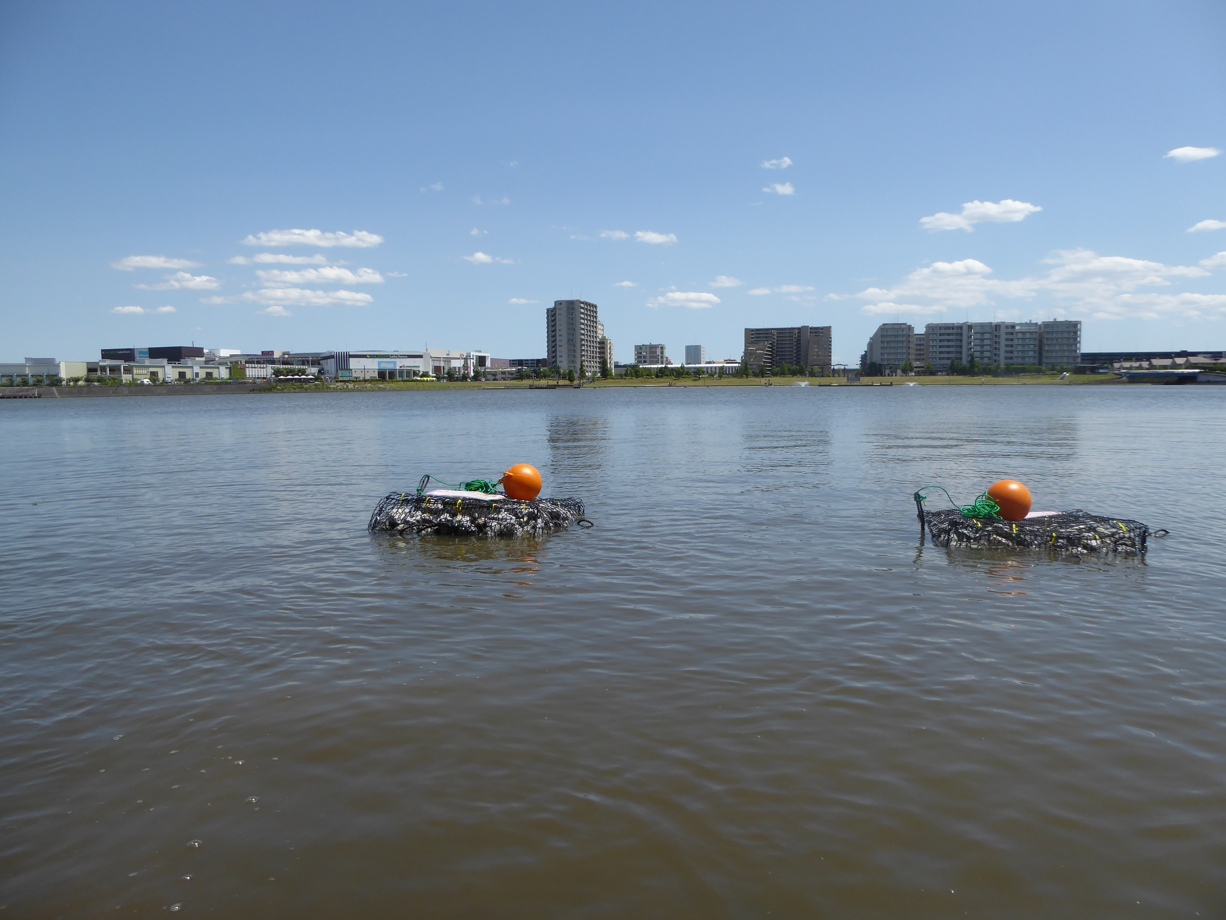 越谷レイクタウンで「石倉カゴ」を使って水辺の生き物調査!