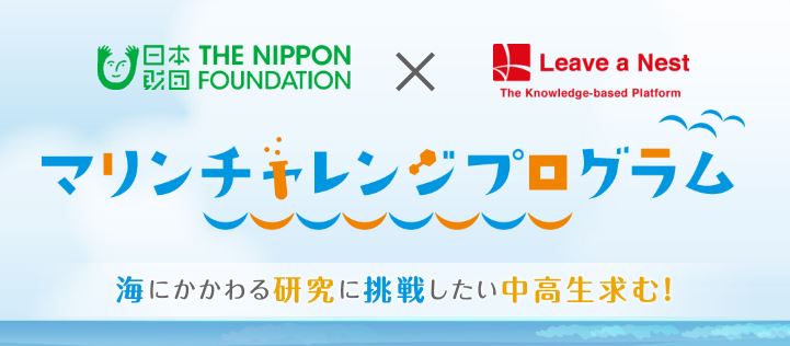 2017年度より開始した「マリンチャレンジプログラム」は、人と海との未来を創り出す仲間づくりのため、海・水産分野・水環境にかかわるあらゆる研究に挑戦する中高生研究者を対象に、研究資金助成や研究アドバイザーによる研究サポートを行います。本プログラムを通じて、未知なる海の可能性に興味をもち、答えのない研究に挑戦する力を磨いた中高生が、10年後、私たちの仲間となって、海に囲まれたこの国の海洋科学技術を既存領域にとらわれず発展させていくことを期待しています。2017年度は59チーム、2018年度は60チームの日本全国の中高生がプログラムに参加しています。このプログラムは、次世代へ海を引き継ぐために、海を介して人と人とがつながる“日本財団「海と日本プロジェクト」”の一環です。 - 内容