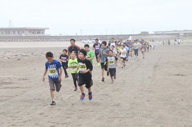 鹿嶋市の重要な資源である海岸とまちづくりの核であるスポーツを融合させ、鹿嶋シーサイドビーチランを開催。561名の参加者が鹿嶋市の砂浜を走り抜けました。ゴール地点の魚市場では、地元の海産物などを使ったうまいもん市場やステージイベント、ビーチ相撲体験、漂流物のトランクミュージアムが実施され、多くの来場者で賑わいました。県立栽培漁業センターにも多くの見物客が訪れ、海の生き物の生態やヒラメの餌やりなどを学ぶことが出来ました。地引網体験や漁船乗船体験も実施予定でしたが、悪天候により中止となりました。