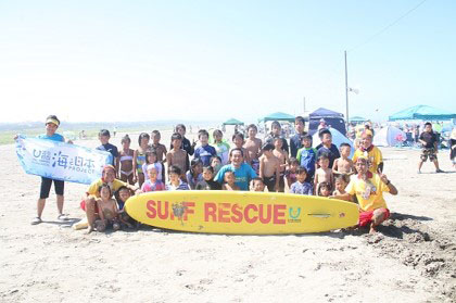 この安全教室では、遊泳する上での注意事項や、レスキューチューブなどを実際に使用して救助の説明をするなど、海の事故防止を呼びかけました。