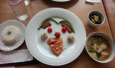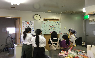参加した子どもたちの家族も一緒に食事をして、参加した子ども達は得意げに料理の説明をしながら勧めていました。子ども達は野菜も含めて、すべて完食!