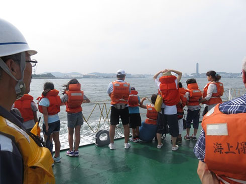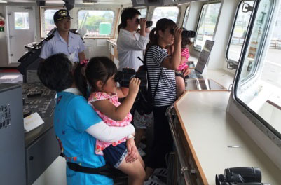 子どもたちが巡視艇「ともなみ」に乗船して関門海峡を航海し、海上保安署の業務への理解を深めるとともに、少年少女に健全な海洋思想を広めました。