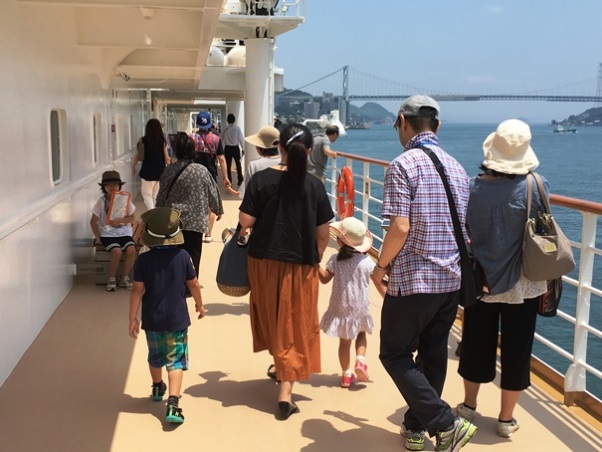 保護者・指導者を含む下関市内子ども会60名・下関海洋少年団7名が乗船。