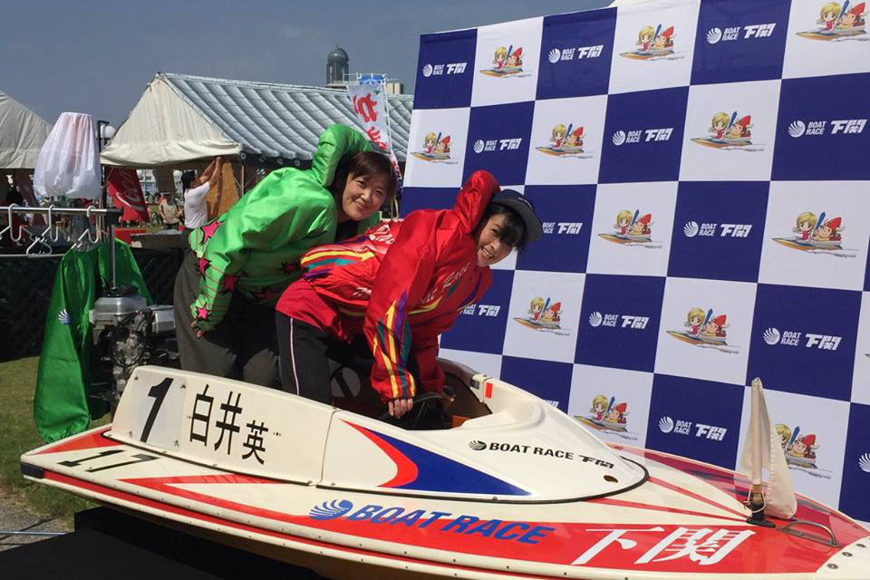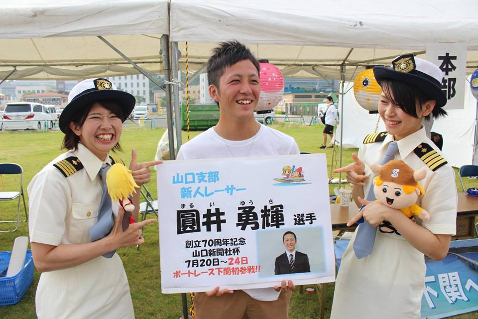 山口支部新人レーサー・圓井勇輝選手もブースで下関ボートのPR、ボートの乗り方を説明し、お客様と交流を図りました。