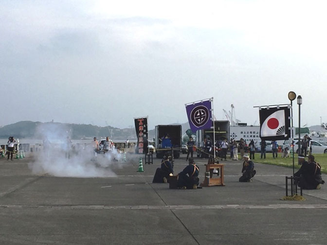 通常の火縄銃よりも太くて大きな長州砲の射撃音(空砲)が響いて煙が立ち上ると、多くの来場者から歓声があがりました。