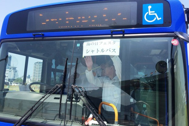 そのため、客船の乗船客や当フェスタ参加者がスムーズに移動できるよう、下関駅~当フェスタ会場の間でシャトルバスを2台運行。多くの方が利用していました。