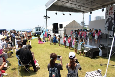 ハワイアンバンドのライブ、フラダンス5団体80名・保育園2園の園児90名によるフラステージ、関門海峡シンガーズ並びに関門海峡合唱団による声楽ステージを実施しました。