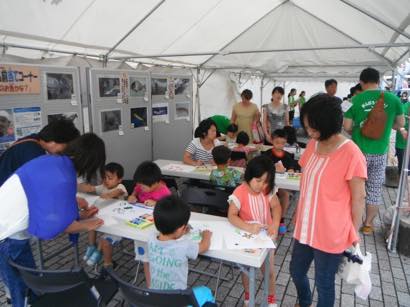 同じく「にかほ海の幸まつり」会場「にかほ『海』の学習会」の中で、海の生き物お絵かきコーナーを設置。おでかけ水族館の生き物の写生や、自分の好きな海の生き物の絵を描いてもらった。おでかけ水族館の盛況もあり、多くの親子連れが、お絵かきコーナーにて写生。40名近いお子様がお絵かきに挑戦。内、33作品の展示承諾をいただき、イベント終了後から8月18日まで、道の駅象潟「ねむの丘」物産センター内に、8月19日から8月31日まで、同じく道の駅象潟「ねむの丘」玄関脇の軽食コーナー内で展示。多くの来館者も足を止め作品を眺める様子もあり、お客様の目を楽しませてくれた。展示された作品は、お礼状と一緒に、返却予定。