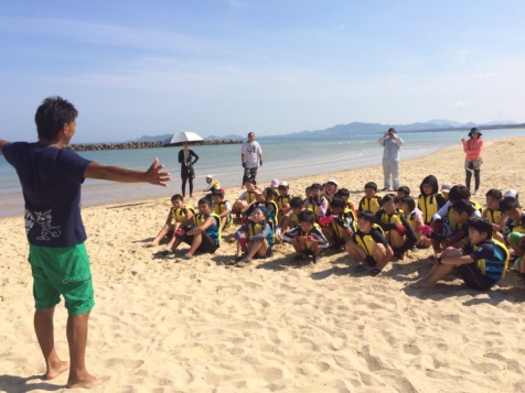 水中スノーケル体験後には、子ども達と一緒に海の中にゴミがあることについて考えていきました。海の生物やゴミを実際に見た子ども達からは、「あのゴミはどこから来たんだろう?」「小さなゴミを魚が食べたらどうなるだろう?」「私たちにできることは何があるだろう?」といった問いかけに対して、積極的な発言が多く出ました。