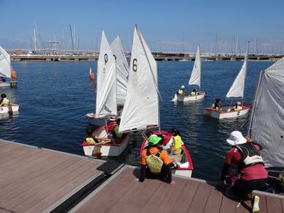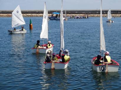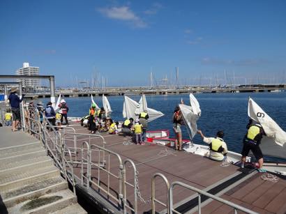 初めて見るOPヨットにこどもたちからは、「こんな小さな船で大丈夫?」、「沖で転覆したらどうしよう。」という不安な声が。スタッフから、「OPヨットは安定性があって、よっぽどのことがないと転覆しないよ。」との説明を受けて、少しはホットしていました。(大人の参加者からは「転覆することもあるんや」と心配する声も・・・)