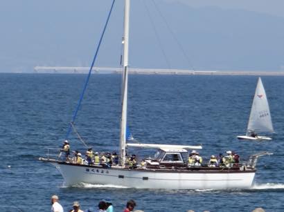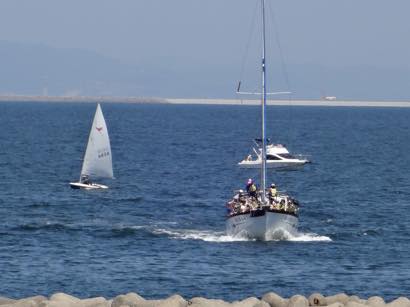 海洋センターには大型クルーザーもあり、クルーズを楽しむことができます。絶好のクルーズ日和に恵まれ、こども達も船べりに座って関西国際空港付近までのクルーズを楽しんでいました。