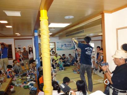 1時間も経過するとそろそろこどもたちも退屈気味に、そこで船内プログラムの第1弾としてロープワーク教室を開催させていただいたところ、大盛況。大人も一緒にロープワークを楽しんでいました。