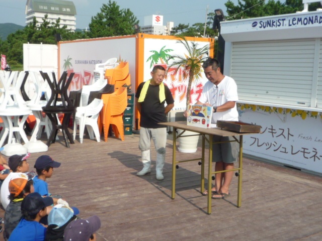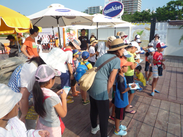 投票用紙に、いちばんおどろいたもの、びっくりしたものに○をつけてもらい、結果を集計。中間集計でトップ10を決め、それをこども新聞にして発行しました。子ども新聞はスマハマナツイチ海の家特設テントに掲示し、専用WEBページでも紹介しました。