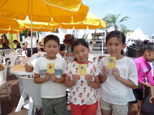 3プログラムを実施しましたが、どの回もパラソルのあるテーブルで暑い中、楽しそうに工作をしてくれました。できた作品をうれしそうにスタッフに見せていたのがとても印象的でした。