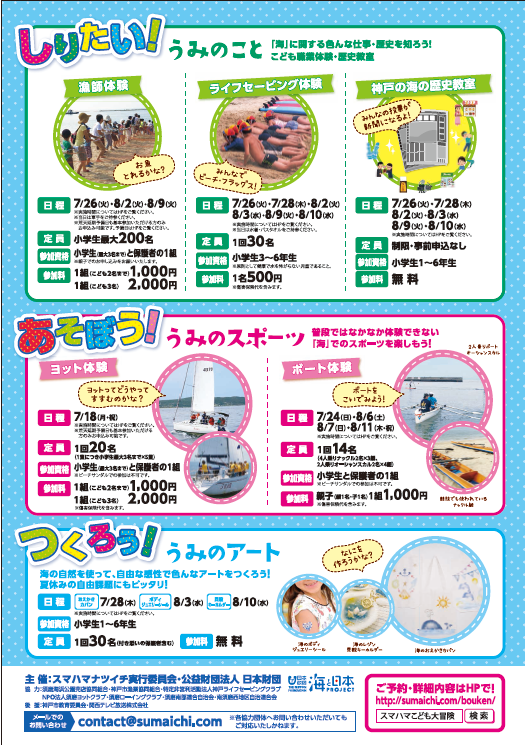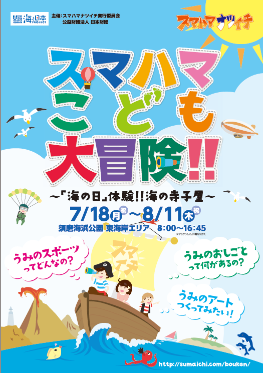 本年度の「スマハマこども大冒険!!」は「海」をキーワードにしたプログラムメニューを昨年度より追加。テーマとして「海の寺子屋」と銘打ち、次世代の子どもたちに幅広く、楽しく「海」を学んでもらうことを目的とする。