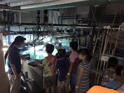 水族園の飼育員体験はお子様にとって貴重な体験ができる内容であり、水族園のバックヤードツアーと題し、飼育員さんがご案内のもと普段見る事ができない水槽の裏側や大水槽のお魚の餌作り、餌やりなどが体験でき、海の生物についても飼育員さんに教えていただいた。