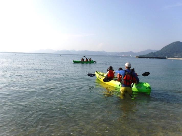 安全性に優れたレクリエーショナルカヤックで、サンセットビーチ湾内を自由に移動することができる、カヤックの乗船体験を行いました。