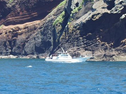 嵯峨島・大瀬崎灯台周辺をクルージングし、海岸地形を見学しました。