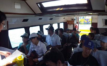 ・みんな船の甲板に出て大はしゃぎ。船酔いも吹き飛びました。