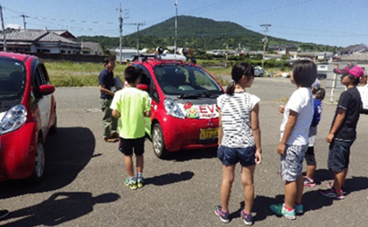 ・続いて電気自動車の試乗体験。島内には100台以上の電気自動車がありますが、ほとんどがレンタカーのため、初めて乗る生徒がほとんどです。