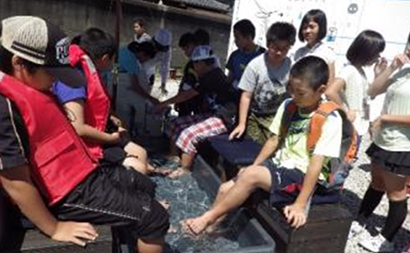 ・続いてMCH回生施設見学です。MCHから電気を作り、沸かした足湯にみんな入りました。