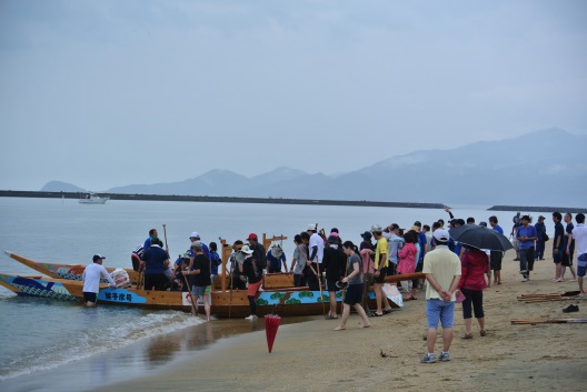 「ペーロン」とは、銅鑼(どら)と太鼓の音を響かせながら和船を漕ぐ舟競争のことで、長崎などの九州地方では歴史のある行事です。「ペーロン・レガッタ競争」では、参加チームが力を合わせて舟を漕ぎました。また、合わせて子どもたちにも舟を漕ぐ楽しさを知ってもらおうと、「子供シーカヤック体験」も開催しました。