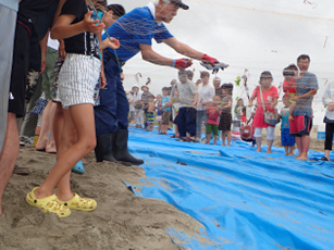 宮海海水浴場のある宮海地区では、以前、地引網漁が盛んに営まれていたが、現在はほとんど姿を消してしまった。その結果、地元の子供たちの多くが地元で捕れる魚を全く知らないまま生活をしている。幸い、地域には地引網漁に携わった人々が健在であるため、その方々の協力を得て、実際の漁業体験を通じて、地元の海の素晴らしさや大切さを学んでもらうことを目的とする。