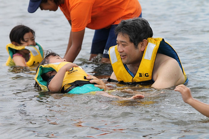 東日本大震災により宮城県東松島市野蒜小で津波に遭った児童が授業で習った「背浮き」を実践し、助かった事例がありました。これを契機に、水の事故から「背浮き」など自分の身を守るための知識や意識の重要性が、認知されてきています。