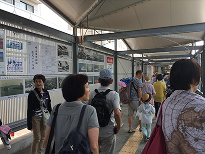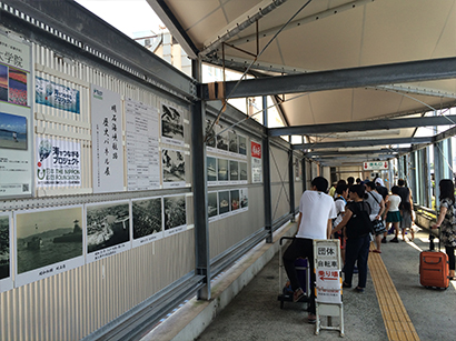 桟橋までの通路壁面に十数枚のパネルを展示したことにより、行き交う人々の目に留まることとなった。