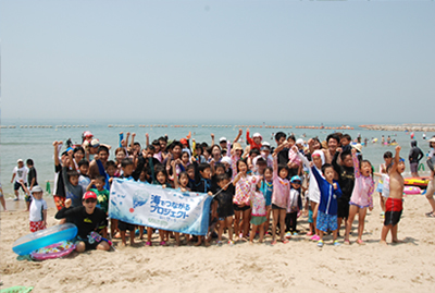 本事業は、林崎・松江海水浴場において、海水浴等に訪れた方々、特に家族連れのお子様を対象に、海や水を使った遊びを体験してもらうことで海に親しんでいただくとともに、明石の海の素晴らしをPRしようと実施したものです。