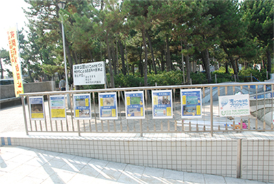 イベントの内容としましては、明石に産卵に訪れるアカウミガメの保護に関するパネルを使った明石の海岸環境保全啓発パネル展、水鉄砲を使ったストラックアウトゲームや色のついた石を波打ち際で探す宝探しゲームなどを開催し、行列ができるほど多くの子供たちが笑顔で真夏のイベントに参加いただきました。