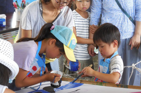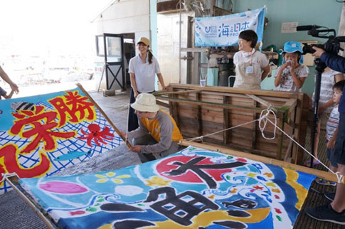7月16日(土)に染色家を招き、漁師と一緒に大漁旗を制作しました。