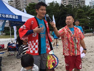 もちろんビーチフラッグスの進行は元世界チャンピオンで、日本ビーチ文化振興協会の副理事長、遊佐雅美さん!