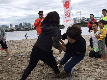家族対抗はだし運動会恒例のビーチフラッグス、そして日本ビーチ相撲協会によるビーチ相撲!