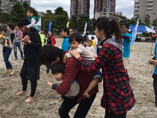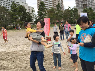 海と日本プロジェクトの一環として、海に隣接したビーチという空間が次世代を担う子どもたちも含めた家族の健康を作り、家族の絆を深めるのに適しているということを「家族対抗はだし運動会」を通して体感し、再認識してもらうことを目的とする。