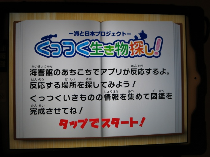 タブレット端末に海響館オリジナルアプリをインストールし、館内のくっつく生き物を探すイベントです。