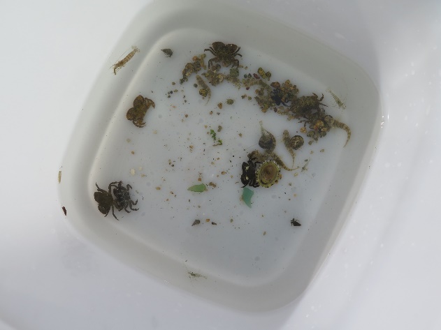 イソガニ、ハゼの仲間、ドロメ、フナムシ、ヒザラガイ、ヤドカリ、ガザミ、エビ、クボガイなどがスケッチされていました。