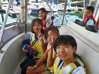 シティマリーナヴェラシスのクルーザーに乗船し、ヨットハーバーから浦賀湾、久里浜湾、東京湾の横須賀側を高速でクルージング体験。子供たちはブリッジの前の席に陣取り湾内の景色を食い入るように見たり、船の起こす波、船の動揺に歓声をあげていました。