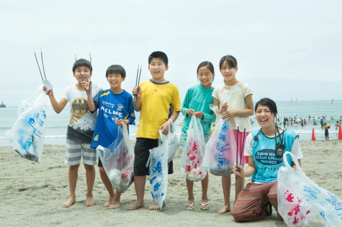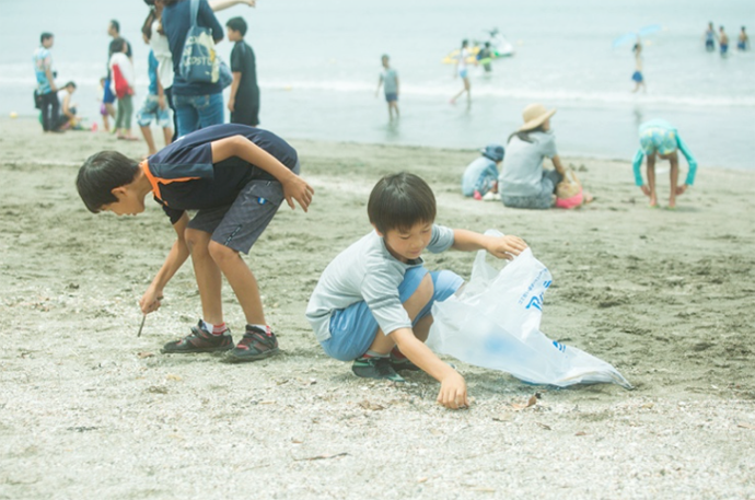 海開き式の日を境に、地元の方はもちろん、県外からもたくさんの方が訪れます。海岸をきれいにしてお客さんを招き入れたい、子供達が裸足で駆け回れるようにしたい、そんな思いを込めてみんなで海岸清掃を行いました。逗子海岸のエコステーションを運営しているNPO法人iPledgeのメンバーとも協力し、大人から子どもまで参加。清掃を通して、海を守る意識を学んでいただきました。