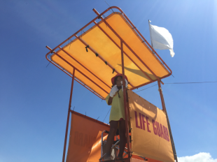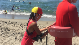 救助用具等は実際に宮海海水浴場の監視施設で使用されているものを使い、参加者は海の安全を守る実際の現場を体験することができました。