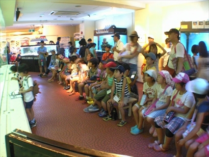 イルカと一緒に泳ぐとともに、学芸員の話を聞いて自然環境や世界を取り巻くイルカ事情を聞くと共に、環境問題に興味を持ってもらうことを目的としました。