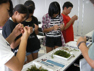 「ホザキノクサモはふさふさしているね」、「セキショウモとネジレモはよく似ているな・・・」、「ホソバミズヒキモは細長く、センニンモは仙人のヒゲみたい」、ササバモ、オオササエビモ、ヒシなど、個性豊かな水草を皆熱心に観察しました。
