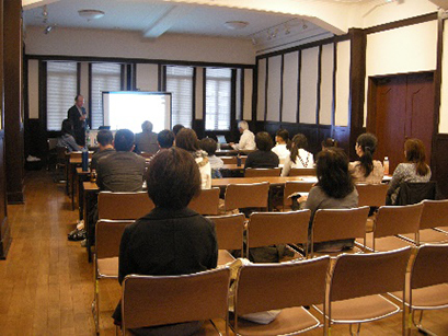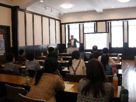 田邊先生には、調査船しらせが氷を割りながら進み、後退と前進を繰り返して進むこと等、南極までどのようにして行くのかを詳しく説明していただきました。南極での生活、巨大なプランクトンや南極の湖に生息する不思議な植物についてのお話を聞きました。ペンギンの気性は意外と荒いことを説明された際は参加者の皆さんの笑いを誘っていました。英語と日本語両方で話していただき、参加者の皆さんにとって大変わかりやすい講演でした。