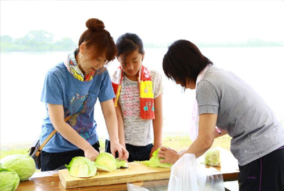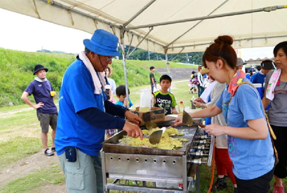 メンバーが振る舞うやきそばは、キャベツ多めでとってもヘルシー。子供も大人もたくさん食べて、麺を追加で買い出しに行くほど。