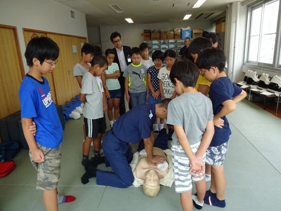 また、人形を使い、実際に心肺蘇生法のやり方を体験することができました。