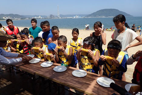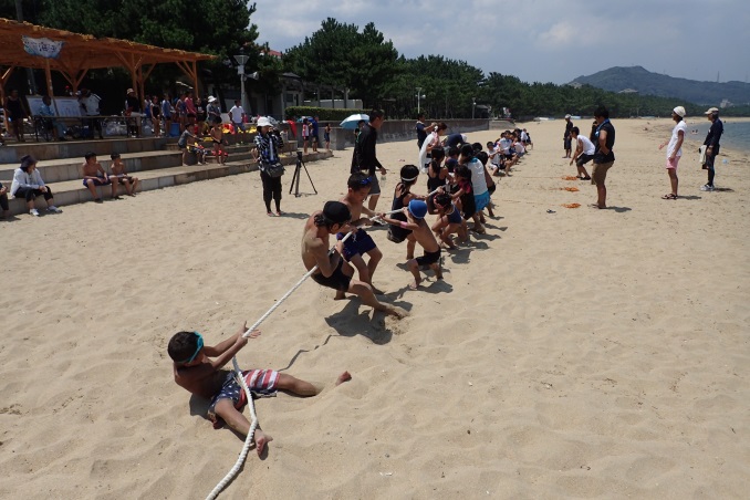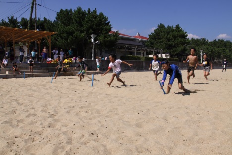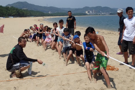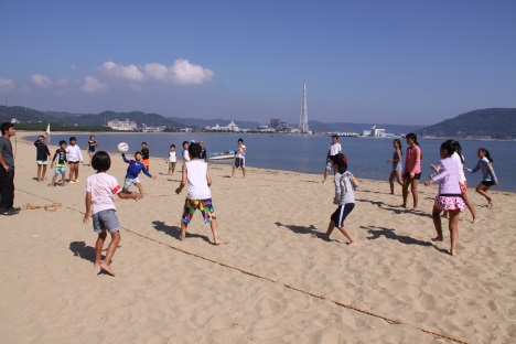 きれいな砂浜が広がる西ノ浜で、小学生の子供達を対象に海遊びを通じて海に親しんでもらいました。