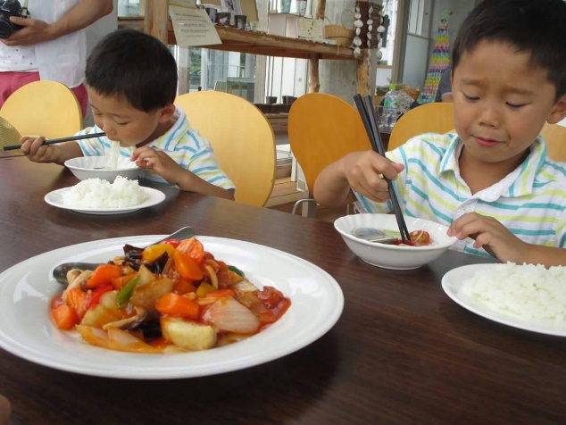 見たことが無い大きな中華包丁を使い子ども達も真剣でした。